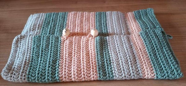Laptop-Tasche mit Einschubfach gehäkelt mit Katzenknopf